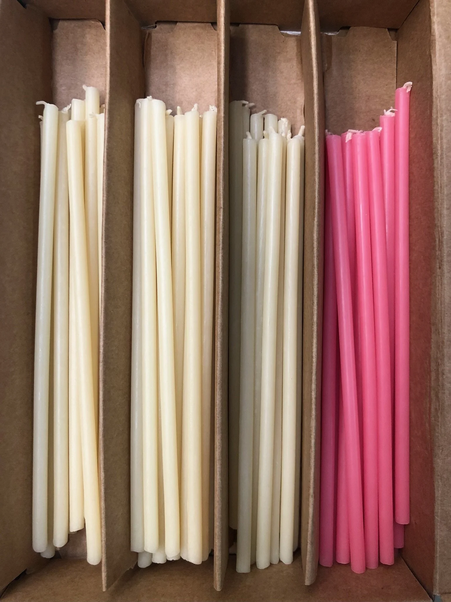 Thin, long candle (white or pink)*: 0,40 €