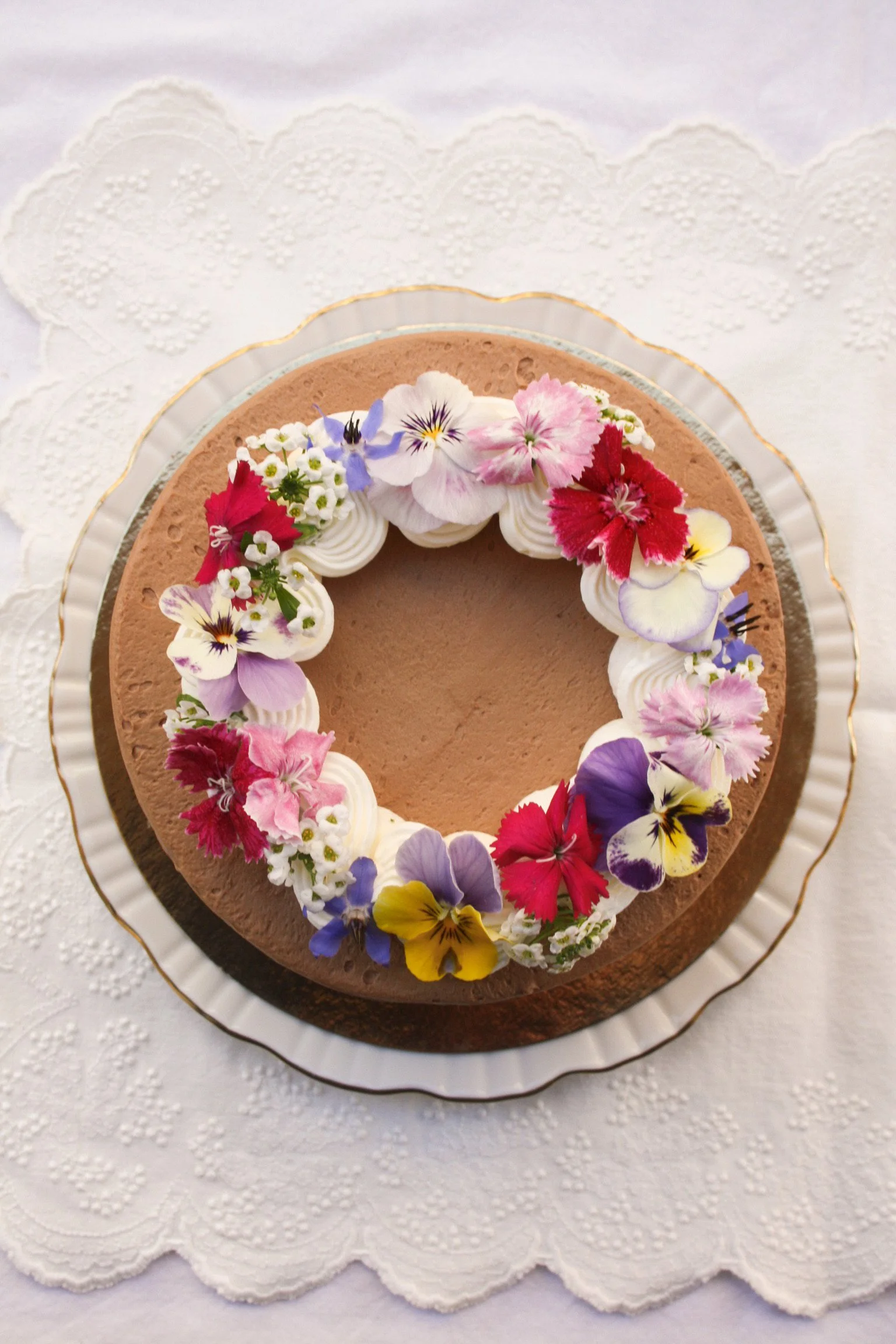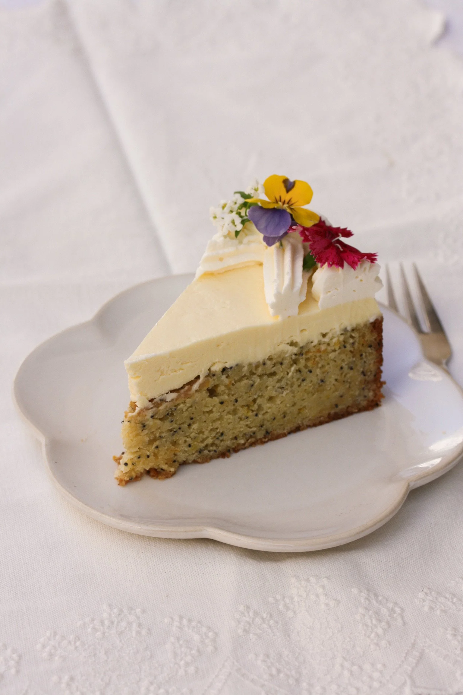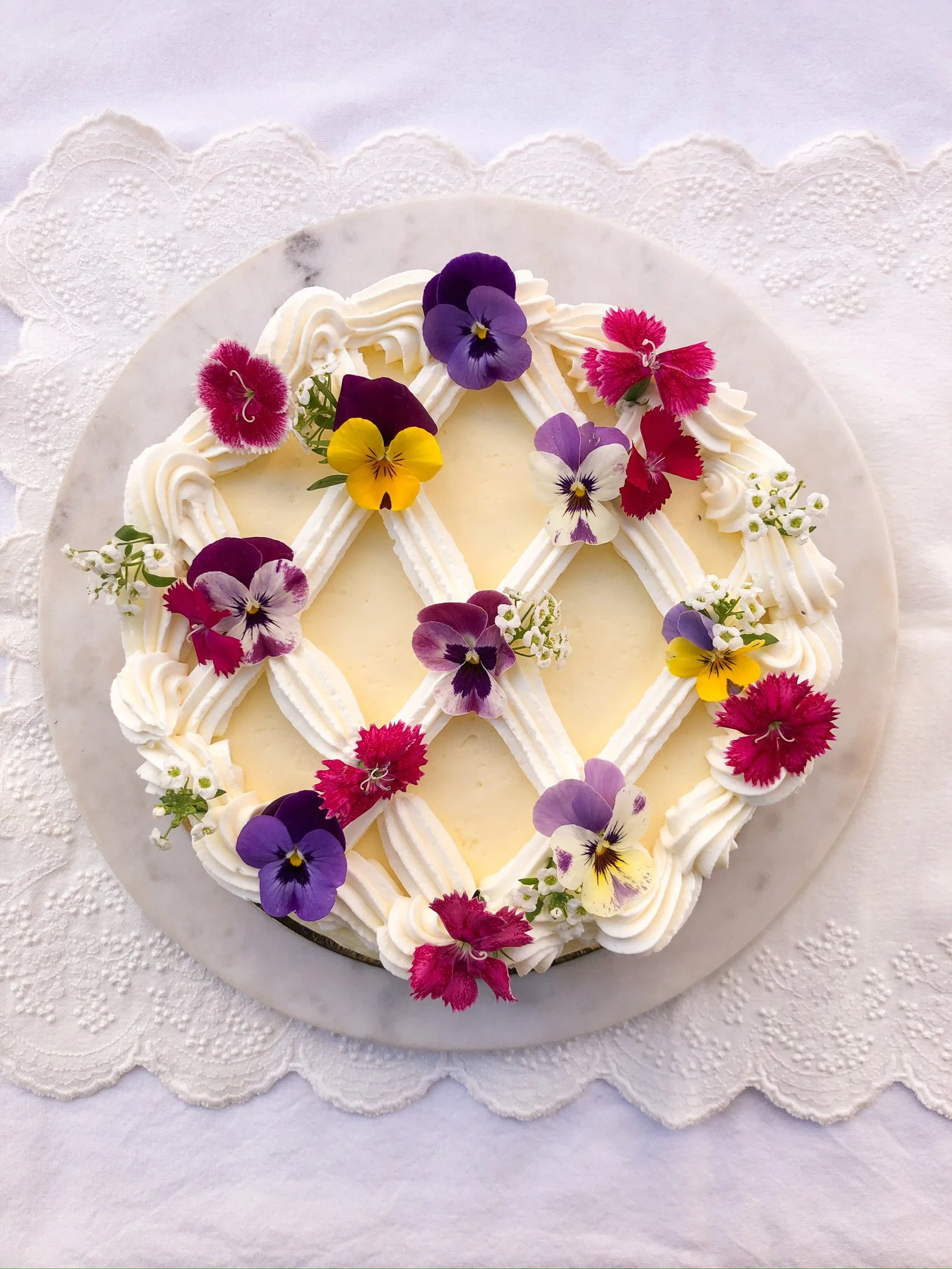 A favourite for family gatherings from the La Konditoría menu turned into a single layer cake and dressed up for Easter with edible flowers. Instead of the usual the curd running through the centre, it’s covered with a citrussy lemon and orange mascarpone butter cream for the special occasion.